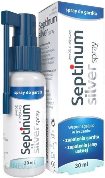 Septinum Silver spray to wyrób medyczny przeznaczony do stosowania w stanach zapalnych gardła. Preparat działa łagodząco na ból, pieczenie oraz trudności z przełykaniem. Wykazuje również działanie nawilżające, a także chroni gardło przed przed szkodliwym wpływem czynników zewnętrznych. Spray Septinum Silver polecany jest m.in. w leczeniu zapalenia jamy ustnej, gardła, a także po usunięciu migdałków podniebiennych.