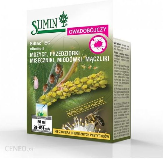 SILTAC ECOPAKOWANIE:20mlPrzedmiotem sprzedaży jest preparat w formie koncentratu do rozcieńczania w wodzie, przeznaczony do fizycznego eliminowania szkodliwych owadów i roztoczy żerujących na roślinach uprawnych. Preparat stanowi alternatywę lub wsparcie dla tradycyjnych, chemicznych metod zwalczania szkodników. Siltac jest mieszaniną różnych związków silikonowych. Po rozcieńczeniu w wodzie i aplikacji na rośliny tworzy gęstą, polimerową sieć, silnie absorbującą się na powierzchni ciała owada. Szkodniki zamknięte w swoistej siatce giną na skutek braku możliwości poruszania się.Środek działa na mszyce, przędziorki, miseczniki, mączlika szklarniowego, wciornastki i miodówki.Zalecana dawka:-drzewa i krzewy owocowe, warzywa i rośliny ozdobne- 0,1-0,2%-10-20ml środka w 10l wodyPełna informacja o preparacie znajduje się na etykiecie/instrukcji stosowania środka ochrony roślin, dołączonej do każdego opakowania. Przedużyciem należy zapoznać się z etykietą. Preparat stosować zgodnie z instrukcją dołączoną do opakowań jednostkowych.Nabycia środków ochrony roślin mogą dokonywać jedynie osoby pełnoletnie oraz posiadające kwalifikacje wymagane od osób nabywających środki ochrony roślin określone w art. 28. Ustawy o środkach ochrony roślin.