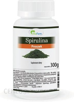 Spirulina to jednokomórkowa alga, która mieści w sobie wielki potencjał odżywczy. Cechą charakterystyczną tej niepozornej mikroalgi jest obecność kwasu gamma linolenowego (GLA) oraz dwóch barwników: fikocyjanina (niebieski) i chlorofil (zielony). Wodorost ten swe bogactwo odżywcze zawdzięcza wysokiej zawartości białka, witamin, mikro i makroelementów. Spirulina może wpływać na układ immunologiczny, obniżać cholesterol, ciśnienie krwi, poziom glukozy oraz neutralizować wolne rodniki, będące źródłem wielu groźnych chorób w organizmie. Preparaty na bazie spiruliny mogą znaleźć zastosowanie do optymalizacji kuracji zdrowotnych.Sposób użycia:1 raz dziennie płaska łyżeczka (1,5g) przed lub w trakcie posiłku. Składniki:100% spirulina w proszkuTabela wartości odżywczych w 100g:Wartość energetyczna 1214kJ/290kcalTłuszczw tym kwasy tłuszczowe nasycone 7,7g2,7gWęglowodanyw tym cukry 23,9g3,1gBłonnik 3,6gBiałko 57,5gSól 2,6gPrzechowywanie:Przechowywać w temperaturze pokojowej, w miejscu niedostępnym dla małych dzieci.Informacje o alergenach:Produkt może zawierać śladowe ilości sezamu i różnych orzechów.Suplementy diety nie mogą być stosowane jako substytut zróżnicowanej diety. Pamiętaj, że tylko zdrowy tryb życia i zrównoważony sposób odżywiania zapewniają prawidłowe funkcjonowanie organizmu i zachowanie dobrej kondycji. Nie należy przekraczać zalecanej porcji do spożycia w ciągu dnia.