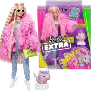 Barbie Extra Moda Lalka Różowa puchata kurtka GRN28